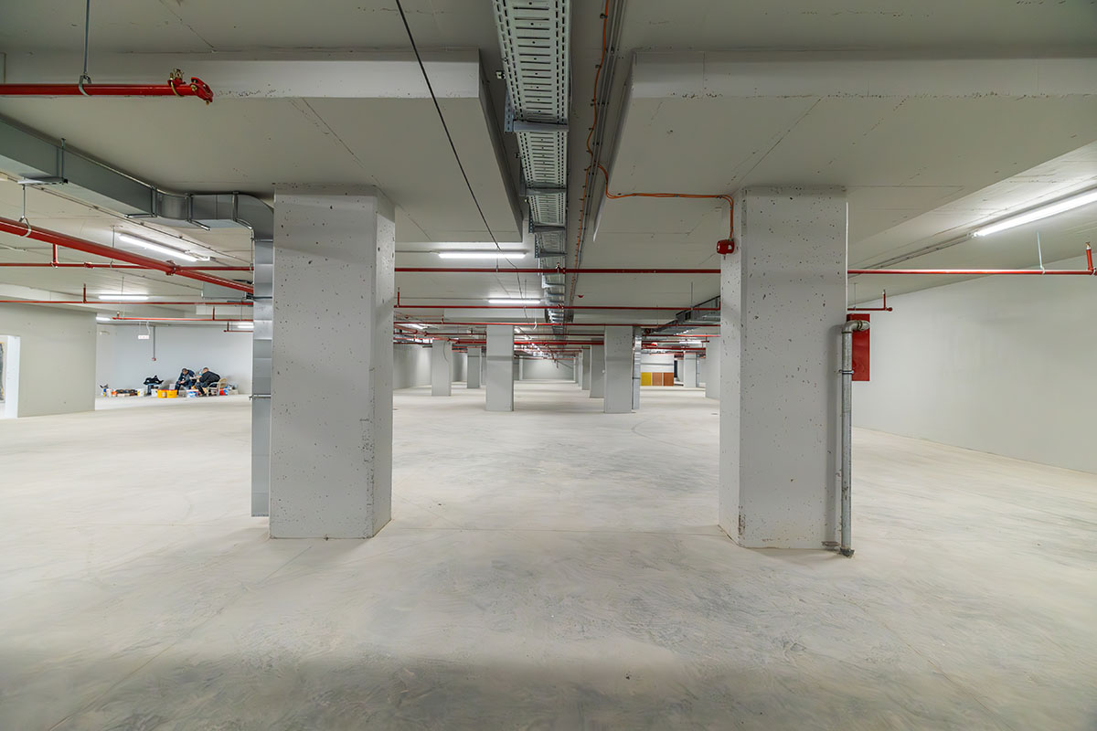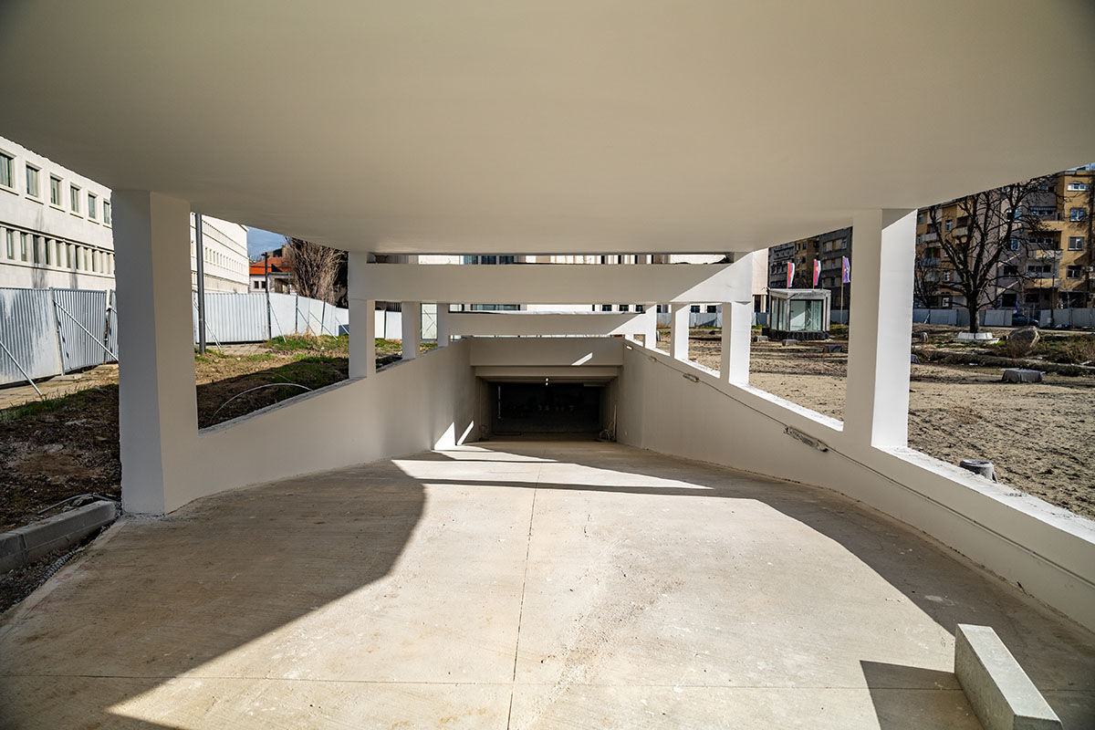 Garaža Modena će imati 267 parking mesta (uključujući parking mesta za osobe sa invaliditetom) raspoređenih na tri podzemna nivoa, sa obezbeđenim punjačima za električne automobile na pojedinim mestima. Završni radovi se očekuju tokom maja, a ukupno je utrošeno preko 10.000 kubnih metara betona i hiljadu tona armature.