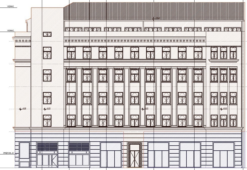 Fasada objekta će biti reastaurirana, a stara fasadna stolarija zamenjena novom aluminijumskom stolarijom u autentičnoj boji.