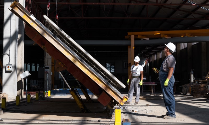 Skidanje elemenata iz modli- nakon definisanog broja sati u komori za sušenje, prefabrikovani element će biti dovoljno tvrd da bi se demontirao iz kalupa i transportovao na lagerovanje, do momenta prevoza na gradilište, gde se planira njegova montaža.