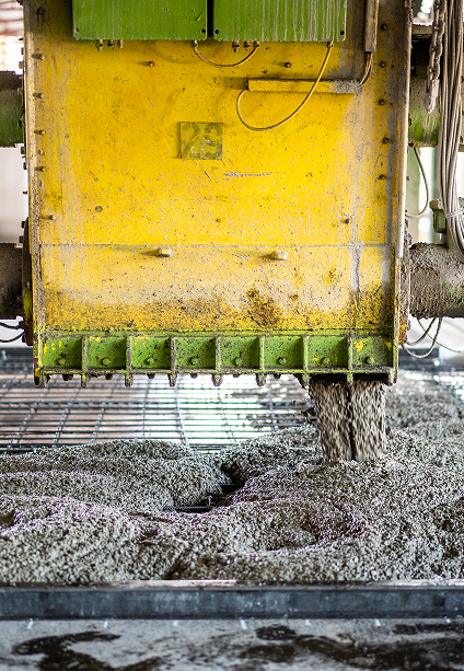 Betoniranje- pri betoniranju vodi se računa o debljini ploče. Kompjuterska kontrola mašine za betoniranje osigurava da se beton ravnomerno raspoređuje po celoj površini metalnog postolja, ODNOSNO tacne.