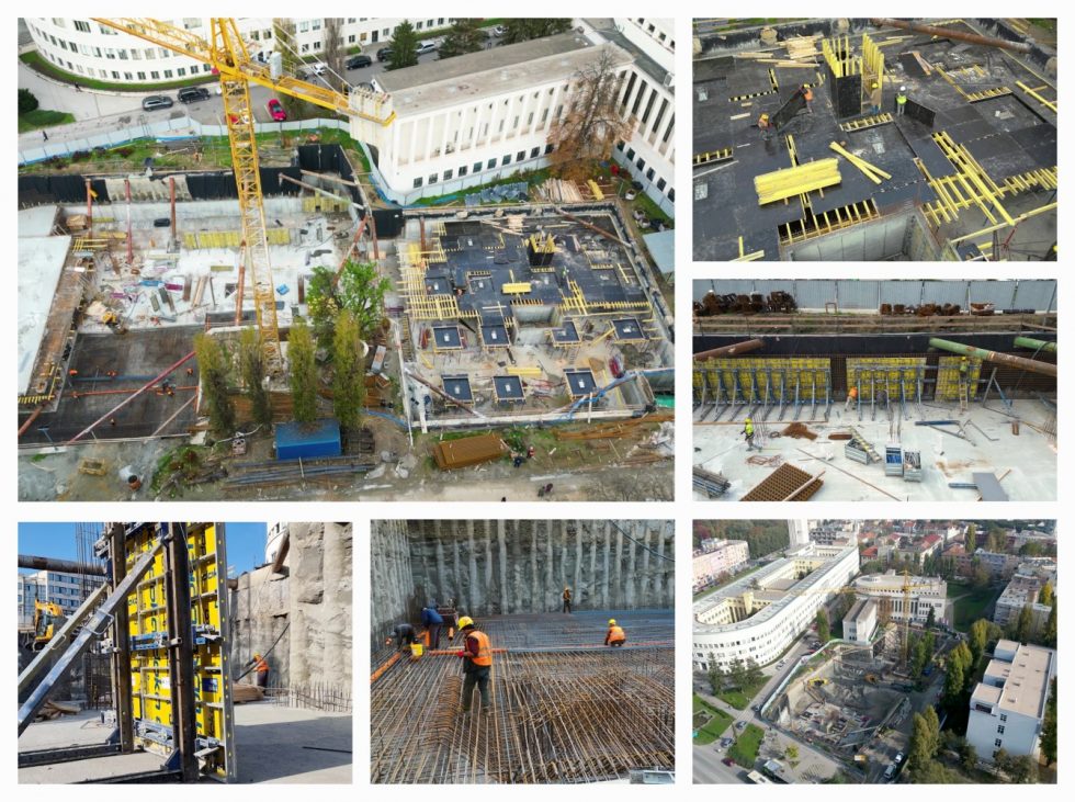 Током новембра је завршена темељне плоча, па је настављено са извођењем плоче -1 етаже и постављање ободних зидова етаже као и бетонирање. Дубина ископа је -7,20 м уз претходно равномерно снижавање нивоа подземних вода у коју сврху је избушено 12 бунара.
